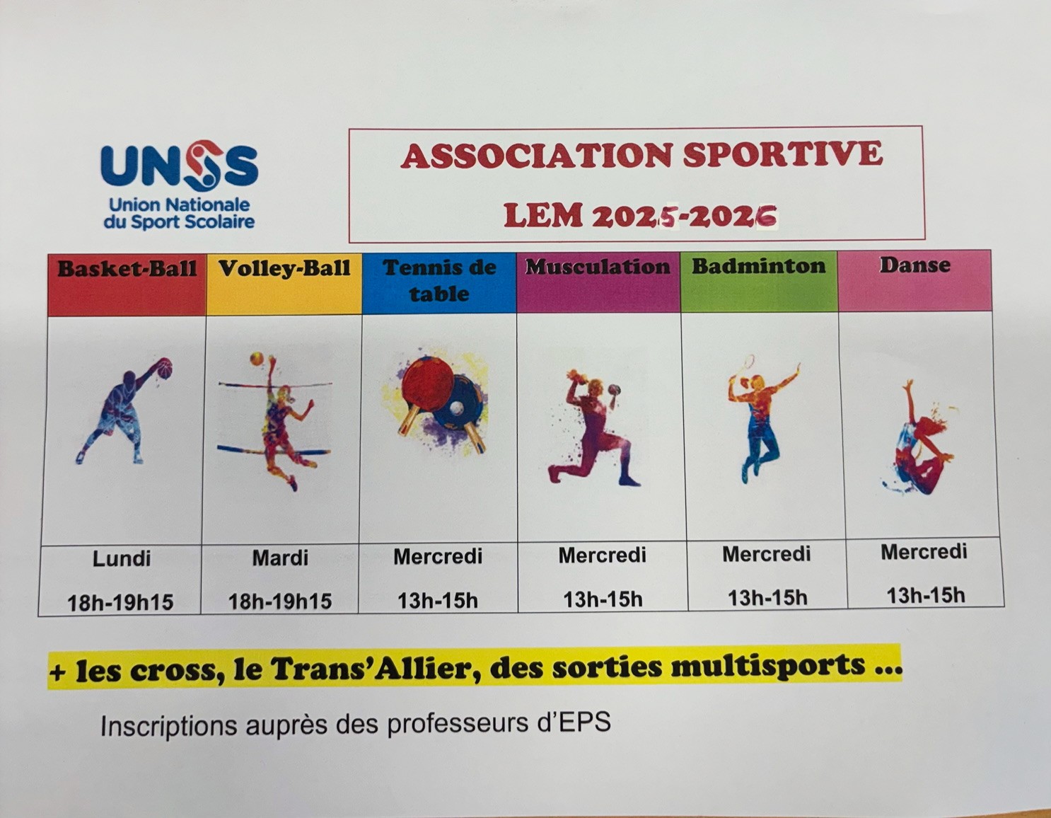 Les activités de l'AS ont démarré, venez nombreux! L'inscription se fait auprès des professeurs d'EPS